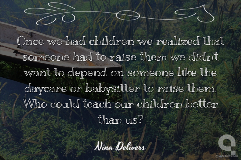 Once we had children we realized that someone had to raise them we didn't want to depend on someone like the daycare or babysitter to raise them. Who could teach our children better than us?