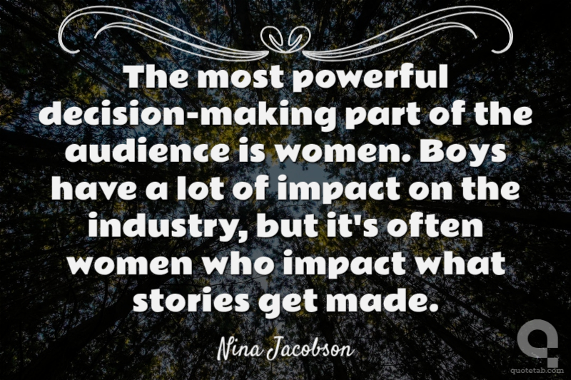 The most powerful decision-making part of the audience is women. Boys have a lot of impact on the industry, but it's often women who impact what stories get made.