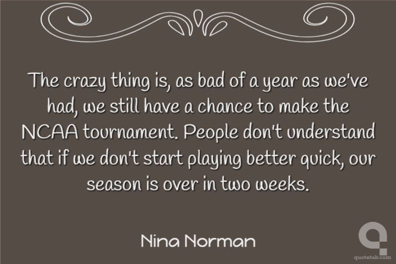 The crazy thing is, as bad of a year as we've had, we still have a chance to make the NCAA tournament. People don't understand that if we don't start playing better quick, our season is over in two weeks.