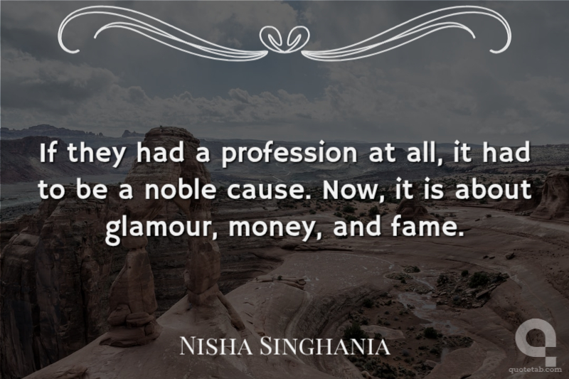 If they had a profession at all, it had to be a noble cause. Now, it is about glamour, money, and fame.