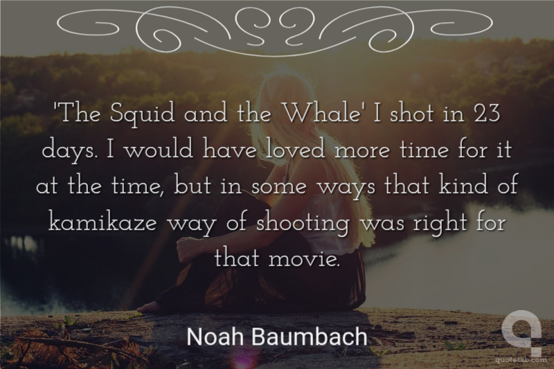 'The Squid and the Whale' I shot in 23 days. I would have loved more time for it at the time, but in some ways that kind of kamikaze way of shooting was right for that movie.