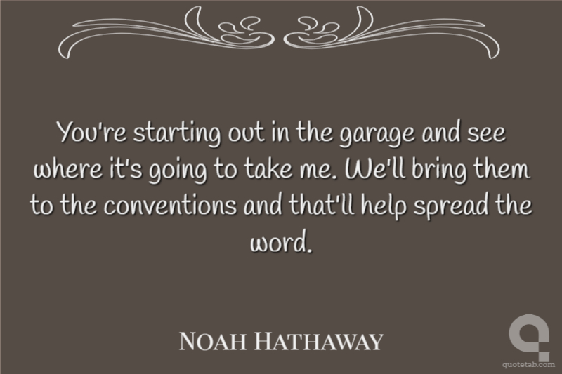 You're starting out in the garage and see where it's going to take me. We'll bring them to the conventions and that'll help spread the word.