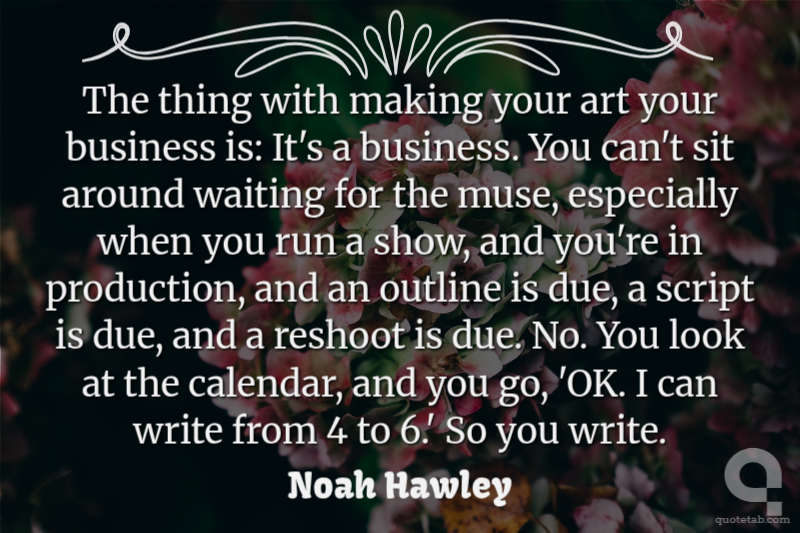 The thing with making your art your business is: It's a business. You can't sit around waiting for the muse, especially when you run a show, and you're in production, and an outline is due, a script is due, and a reshoot is due. No. You look at the calendar, and you go, 'OK. I can write from 4 to 6.' So you write.