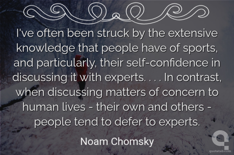I've often been struck by the extensive knowledge that people have of sports, and particularly, their self-confidence in discussing it with experts. . . . In contrast, when discussing matters of concern to human lives - their own and others - people tend to defer to experts.