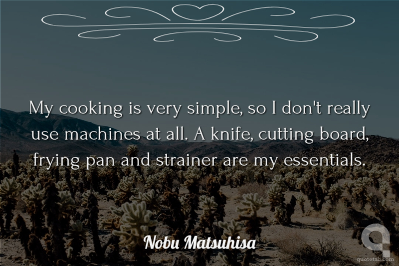 My cooking is very simple, so I don't really use machines at all. A knife, cutting board, frying pan and strainer are my essentials.