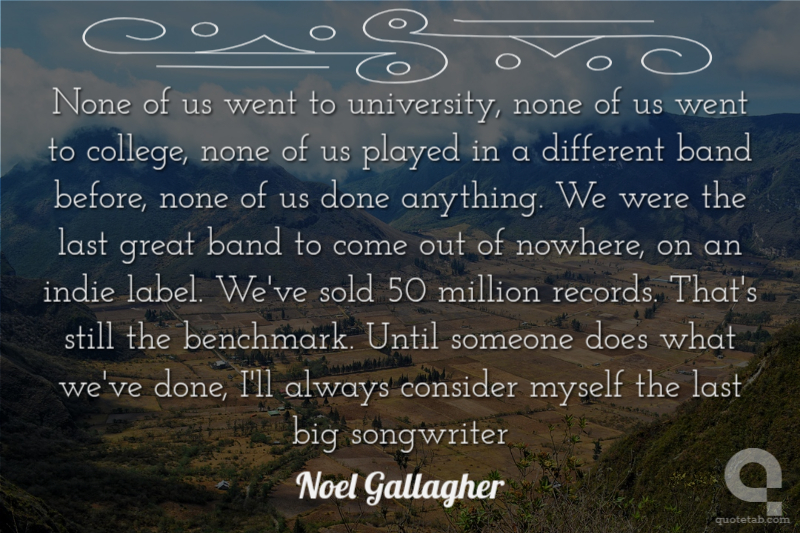 None of us went to university, none of us went to college, none of us played in a different band before, none of us done anything. We were the last great band to come out of nowhere, on an indie label. We've sold 50 million records. That's still the benchmark. Until someone does what we've done, I'll always consider myself the last big songwriter