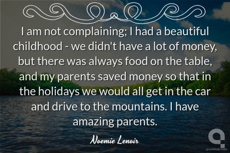 I am not complaining; I had a beautiful childhood - we didn't have a lot of money, but there was always food on the table, and my parents saved money so that in the holidays we would all get in the car and drive to the mountains. I have amazing parents.