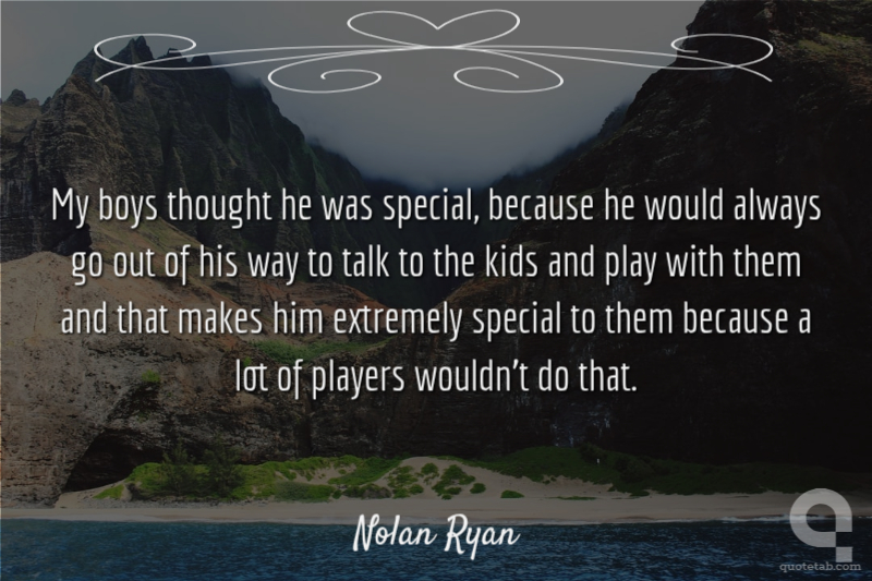 My boys thought he was special, because he would always go out of his way to talk to the kids and play with them and that makes him extremely special to them because a lot of players wouldn't do that.