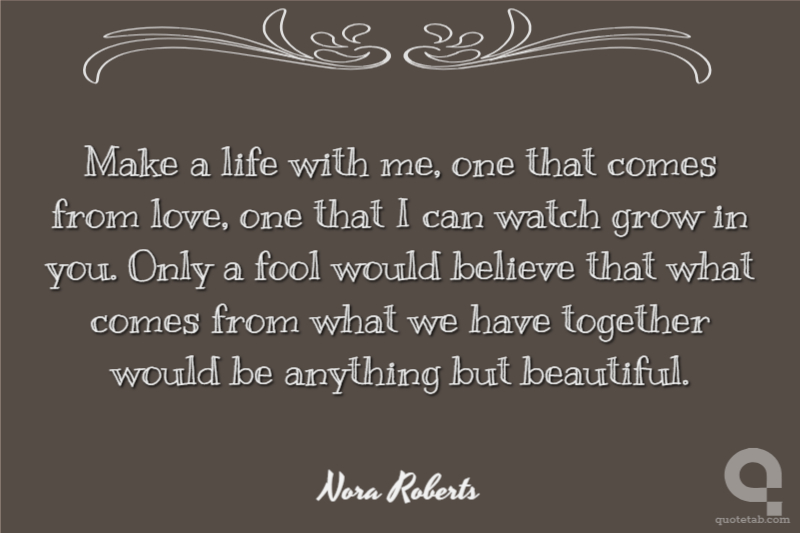 Make a life with me, one that comes from love, one that I can watch grow in you. Only a fool would believe that what comes from what we have together would be anything but beautiful.