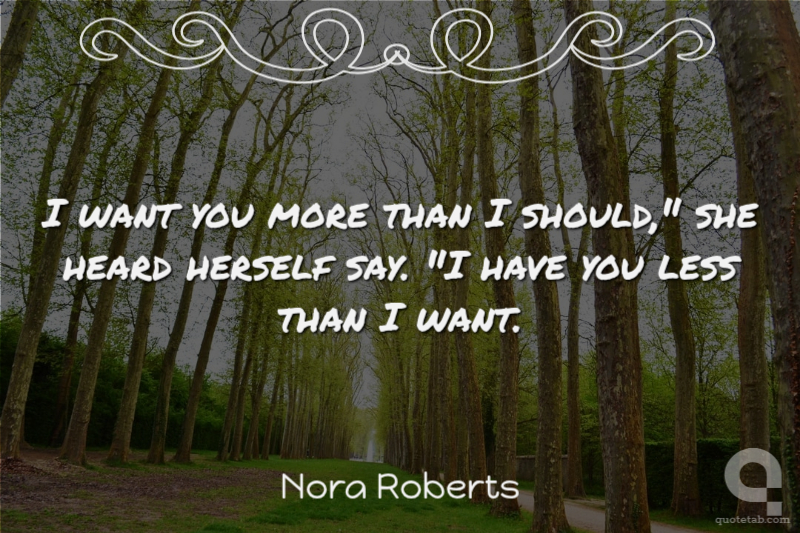 I want you more than I should," she heard herself say. "I have you less than I want.