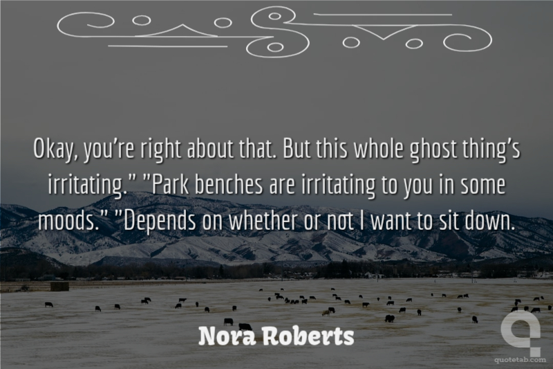 Okay, you're right about that. But this whole ghost thing's irritating." "Park benches are irritating to you in some moods." "Depends on whether or not I want to sit down.