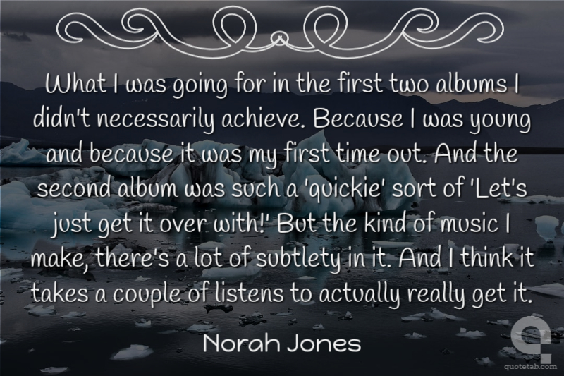 What I was going for in the first two albums I didn't necessarily achieve. Because I was young and because it was my first time out. And the second album was such a 'quickie' sort of 'Let's just get it over with!' But the kind of music I make, there's a lot of subtlety in it. And I think it takes a couple of listens to actually really get it.