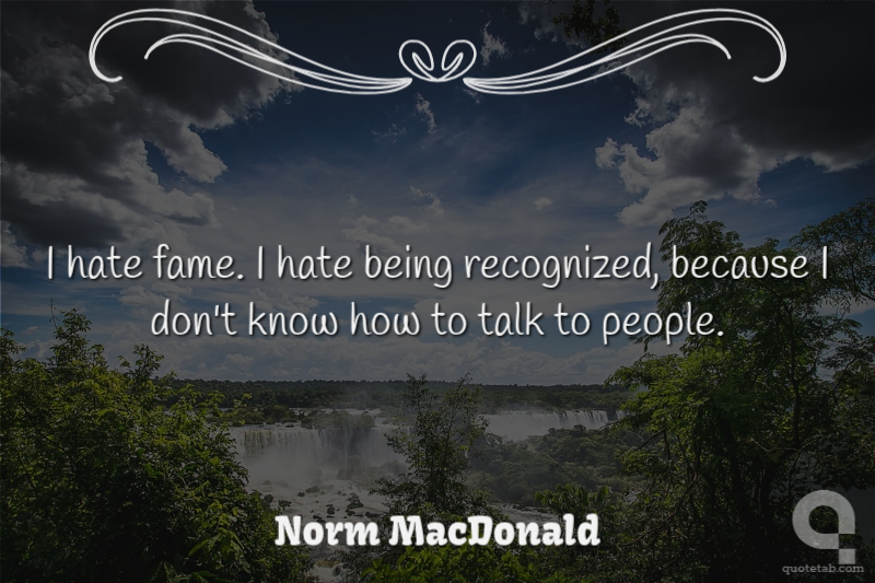 I hate fame. I hate being recognized, because I don't know how to talk to people.
