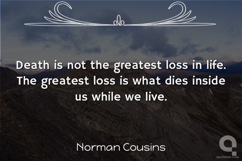 Death is not the greatest loss in life. The greatest loss is what dies inside us while we live.