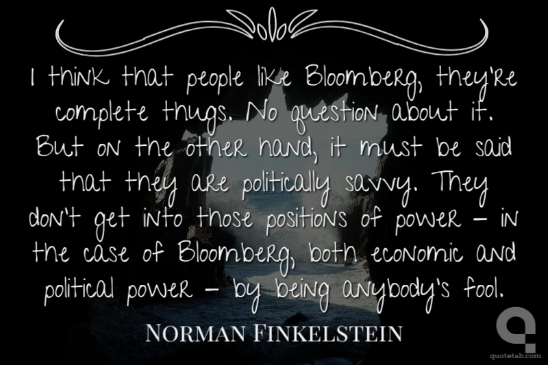 I think that people like Bloomberg, they're complete thugs. No question about it. But on the other hand, it must be said that they are politically savvy. They don't get into those positions of power - in the case of Bloomberg, both economic and political power - by being anybody's fool.