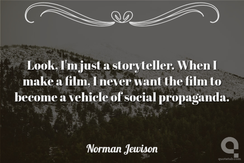 Look, I'm just a storyteller. When I make a film, I never want the film to become a vehicle of social propaganda.