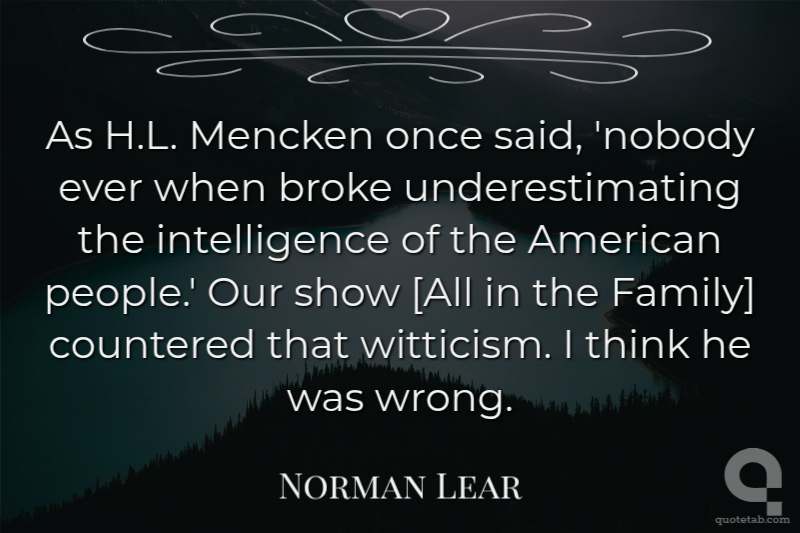 As H.L. Mencken once said, 'nobody ever when broke underestimating the intelligence of the American people.' Our show [All in the Family] countered that witticism. I think he was wrong.