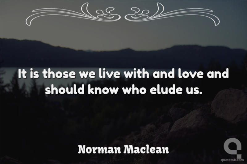 At sunrise everything is luminous but not clear. It is those we live with and love and should know who elude us. You can love completely without complete understanding. - A River Runs Through it