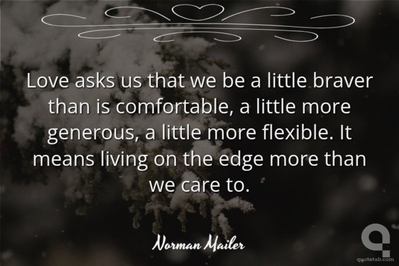 Love asks us that we be a little braver than is comfortable, a little more generous, a little more flexible. It means living on the edge more than we care to.