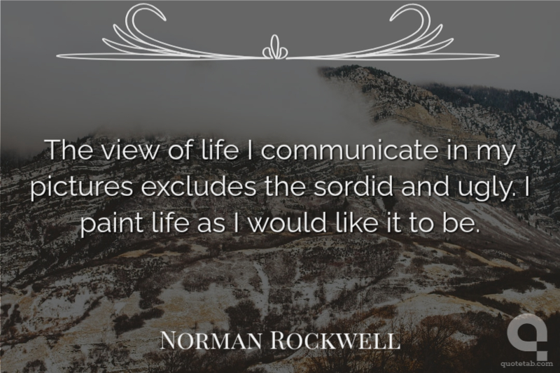 The view of life I communicate in my pictures excludes the sordid and ugly. I paint life as I would like it to be.
