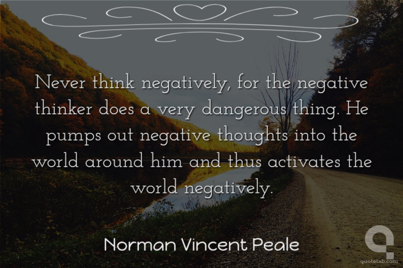 Never think negatively, for the negative thinker does a very dangerous thing. He pumps out negative thoughts into the world around him and thus activates the world negatively.