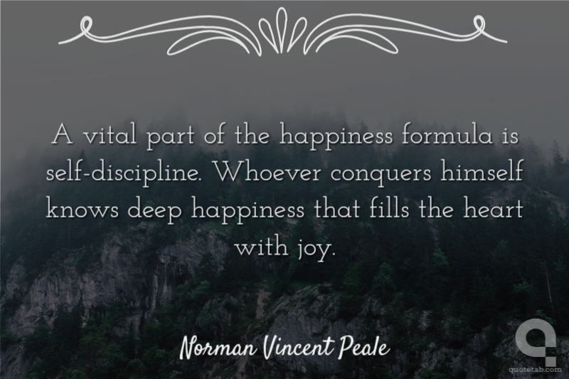 A vital part of the happiness formula is self-discipline. Whoever conquers himself knows deep happiness that fills the heart with joy.