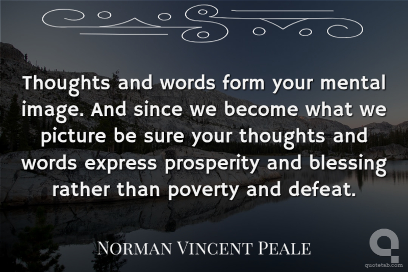 Thoughts and words form your mental image. And since we become what we picture be sure your thoughts and words express prosperity and blessing rather than poverty and defeat.