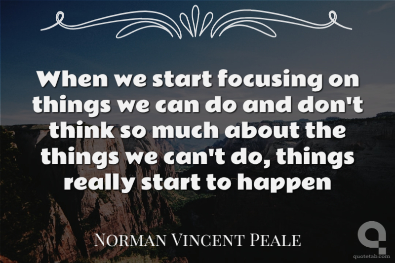 When we start focusing on things we can do and don't think so much about the things we can't do, things really start to happen