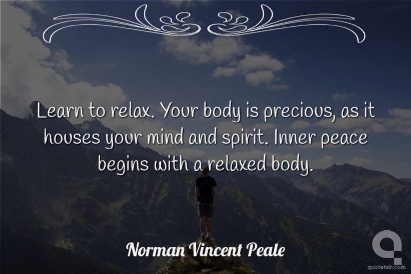 Learn to relax. Your body is precious, as it houses your mind and spirit. Inner peace begins with a relaxed body.