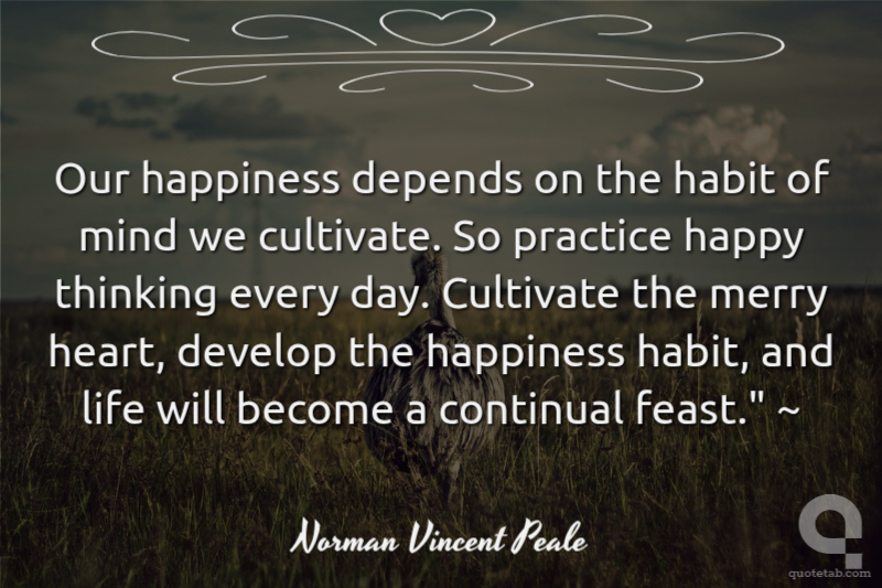 Our happiness depends on the habit of mind we cultivate. So practice happy thinking every day. Cultivate the merry heart, develop the happiness habit, and life will become a continual feast." ~