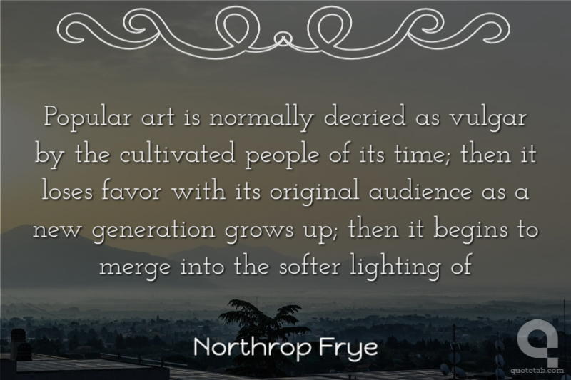 Popular art is normally decried as vulgar by the cultivated people of its time; then it loses favor with its original audience as a new generation grows up; then it begins to merge into the softer lighting of