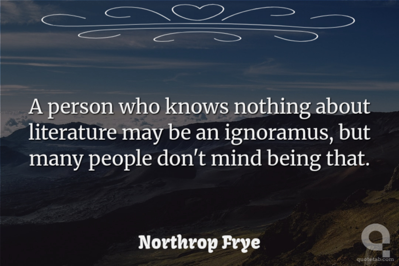 A person who knows nothing about literature may be an ignoramus, but many people don't mind being that.