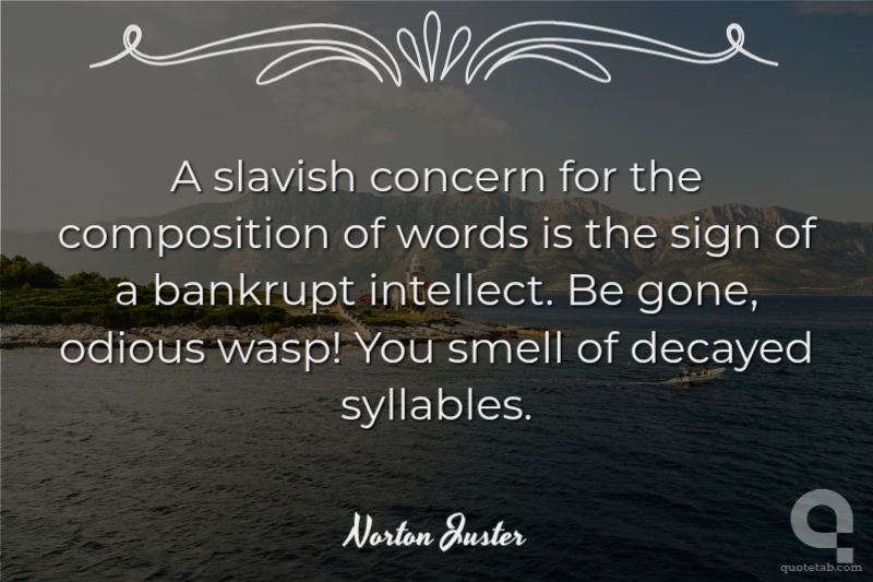 A slavish concern for the composition of words is the sign of a bankrupt intellect. Be gone, odious wasp! You smell of decayed syllables.