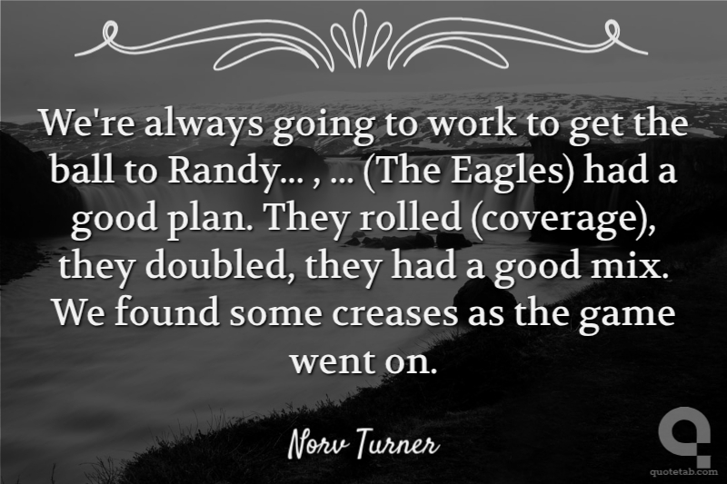 We're always going to work to get the ball to Randy... , ... (The Eagles) had a good plan. They rolled (coverage), they doubled, they had a good mix. We found some creases as the game went on.