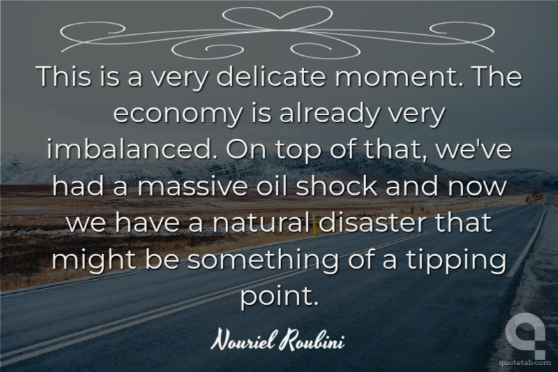 This is a very delicate moment. The economy is already very imbalanced. On top of that, we've had a massive oil shock and now we have a natural disaster that might be something of a tipping point.