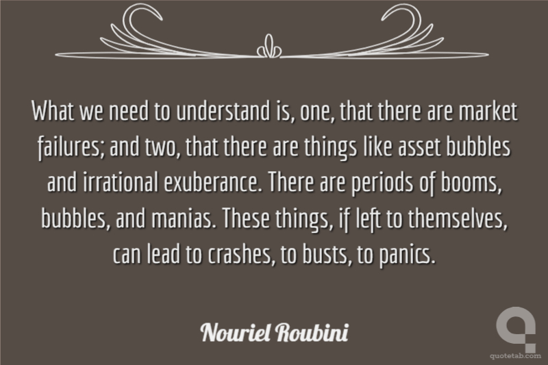 What we need to understand is, one, that there are market failures; and two, that there are things like asset bubbles and irrational exuberance. There are periods of booms, bubbles, and manias. These things, if left to themselves, can lead to crashes, to busts, to panics.