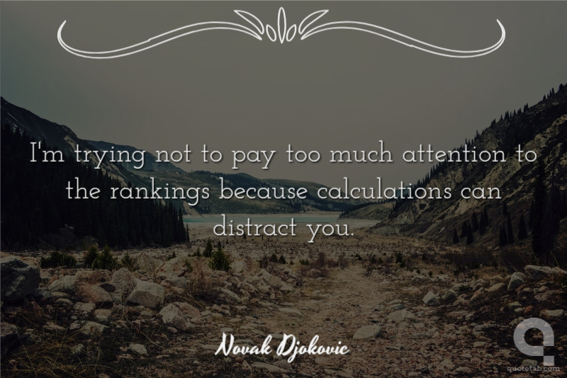 I'm trying not to pay too much attention to the rankings because calculations can distract you.