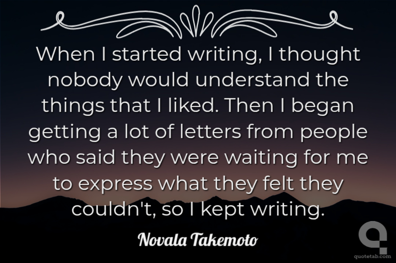When I started writing, I thought nobody would understand the things that I liked. Then I began getting a lot of letters from people who said they were waiting for me to express what they felt they couldn't, so I kept writing.