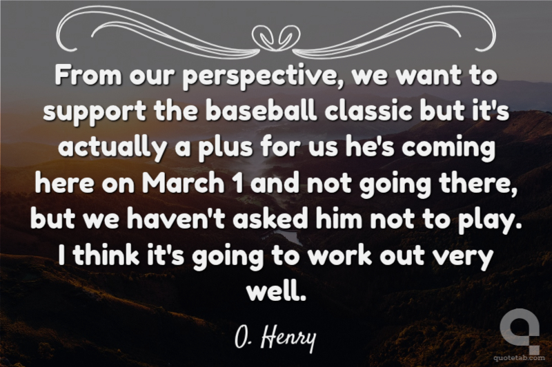 You know, from our perspective, we'd love to ... you know, we want to support the Baseball Classic but it's actually a plus for us that he's coming here March 1st and not playing there.