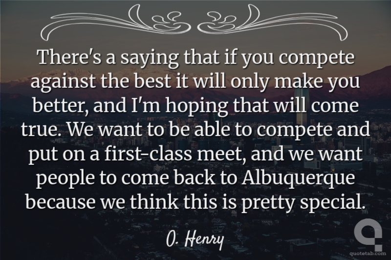 There's a saying that if you compete against the best it will only make you better, and I'm hoping that will come true. We want to be able to compete and put on a first-class meet, and we want people to come back to Albuquerque because we think this is pretty special.