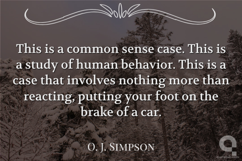 This is a common sense case. This is a study of human behavior. This is a case that involves nothing more than reacting, putting your foot on the brake of a car.
