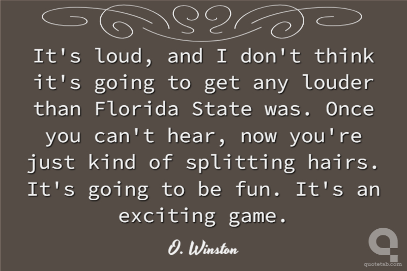 It's loud, and I don't think it's going to get any louder than Florida State was. Once you can't hear, now you're just kind of splitting hairs. It's going to be fun. It's an exciting game.