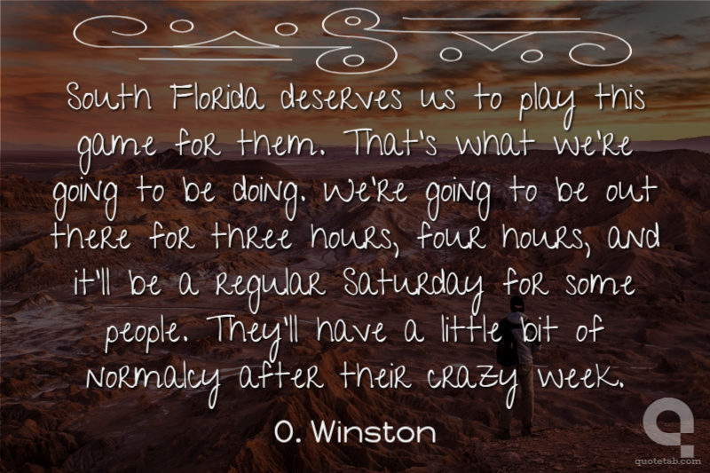 South Florida deserves us to play this game for them. That's what we're going to be doing. We're going to be out there for three hours, four hours, and it'll be a regular Saturday for some people. They'll have a little bit of normalcy after their crazy week.