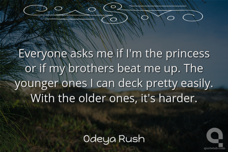 Everyone asks me if I'm the princess or if my brothers beat me up. The younger ones I can deck pretty easily. With the older ones, it's harder.