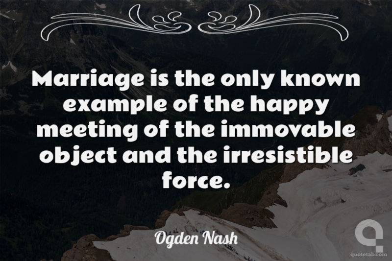 Marriage is the only known example of the happy meeting of the immovable object and the irresistible force.