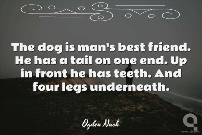 The dog is man's best friend. He has a tail on one end. Up in front he has teeth. And four legs underneath.