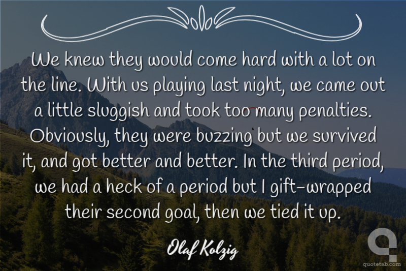We knew they would come hard with a lot on the line. With us playing last night, we came out a little sluggish and took too many penalties. Obviously, they were buzzing but we survived it, and got better and better. In the third period, we had a heck of a period but I gift-wrapped their second goal, then we tied it up.