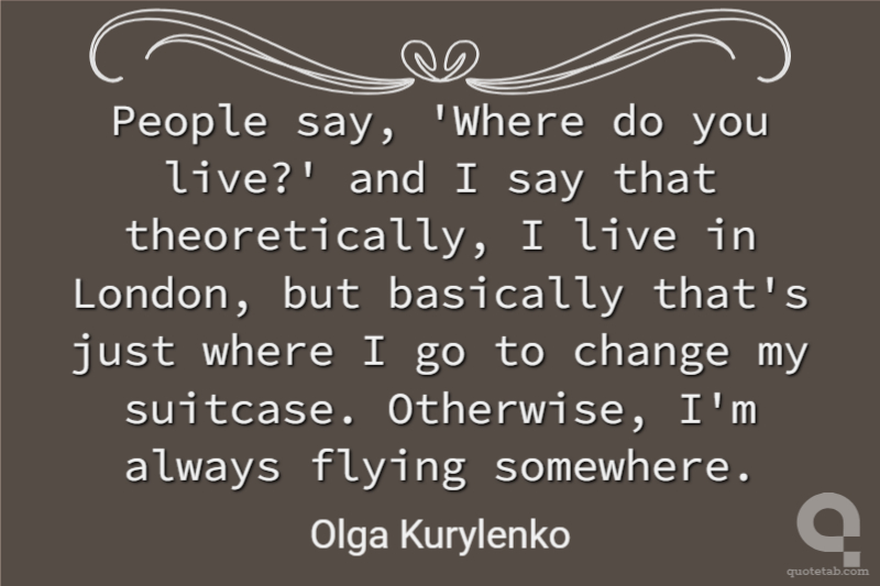 People say, 'Where do you live?' and I say that theoretically, I live in London, but basically that's just where I go to change my suitcase. Otherwise, I'm always flying somewhere.