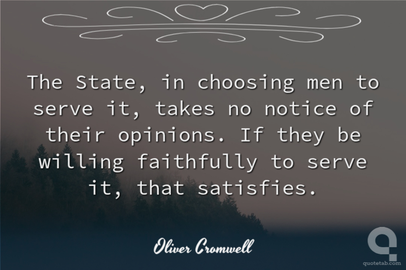 The State, in choosing men to serve it, takes no notice of their opinions. If they be willing faithfully to serve it, that satisfies.