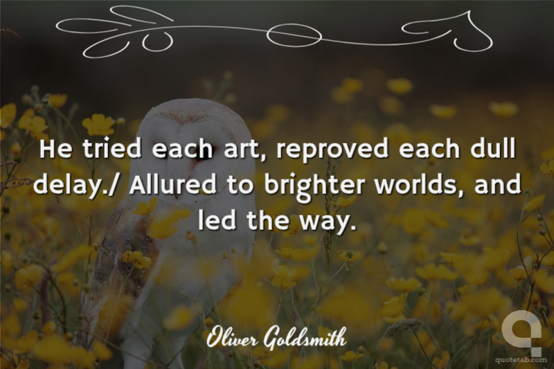 He tried each art, reproved each dull delay./ Allured to brighter worlds, and led the way.